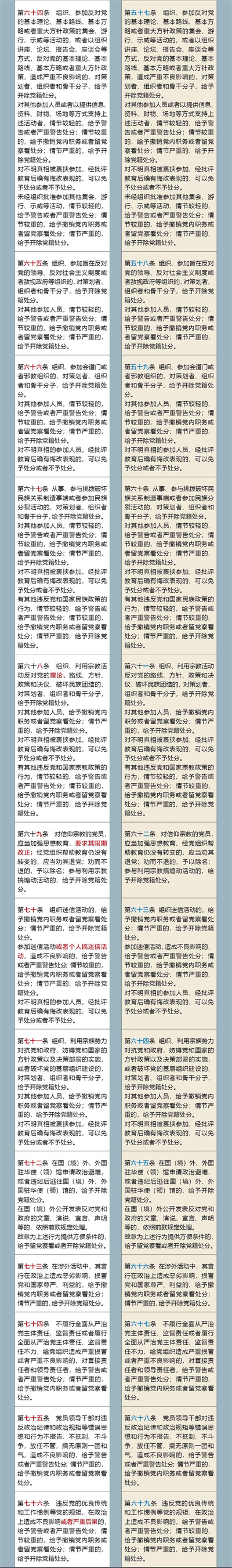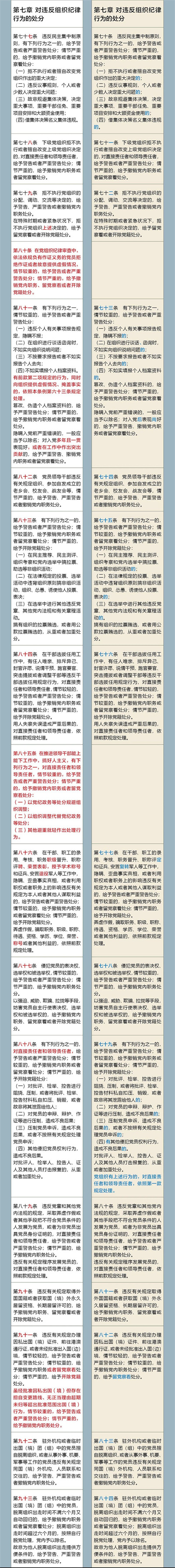 《中国共产党纪律处分条例》修订前后对照表